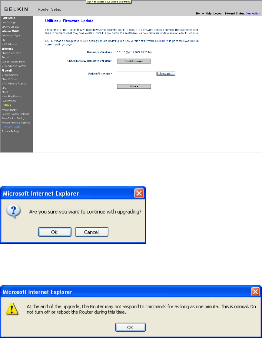 Login to the router configuration utility http19216821 click firmware update this is located under the heading utilities on the left menu bar browse to where the file was saved and then click ok. This agreement will govern any upgrades provided by belkin that replace andor supplement the original firmware andor software unless such upgrade is accompanied by a separate end user license agreement in which case the terms of that end user license agreement will govern. How to know if your belkin n wireless router needs a firmware update. Download software license agreement. Get the latest firmware for belkin wireless routers. A firmware update contains improvements to the performance of your belkin router and could also resolve issues that the previous firmware version may have.