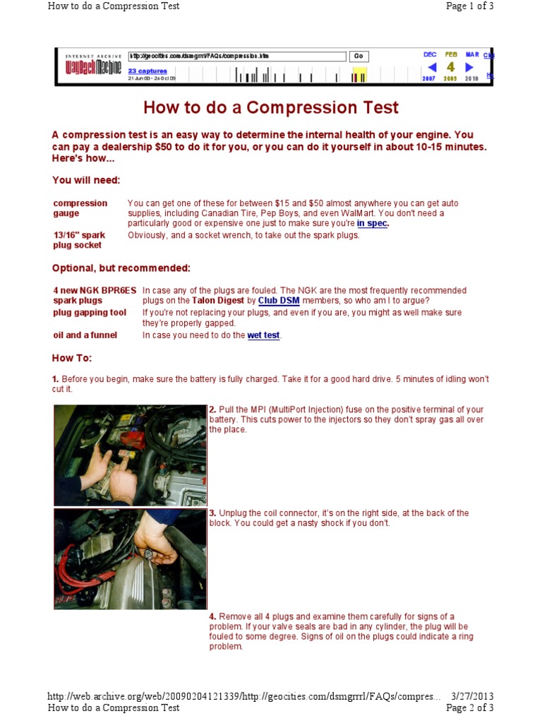 How to do compression test. With a compression tester a few hand tools and 20 minutes you can try this yourself. Step 1 remove the fuel pump and fuel injection fuses. Cylinder compression can inform you on how much wear an engine has on. Double check that you disconnected the appropriate stuff so the engine doesnt actually start. The trouble is poor ring to bore sealing. Youre all set up now and ready to actually do the compression test.