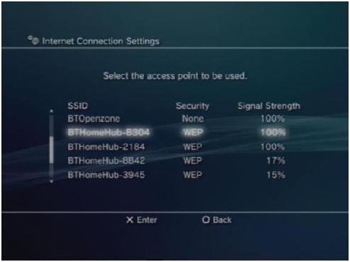Ps3 wlan security setting. When you are asked to choose a setting method select custom. If you want a wired plug an. Under ssid look for the name of your wireless home network select it and press the x button. Then follow the on screen instructions to configure new network settings. Now youll need to provide your routers security settings. Scan for a nearby access point.